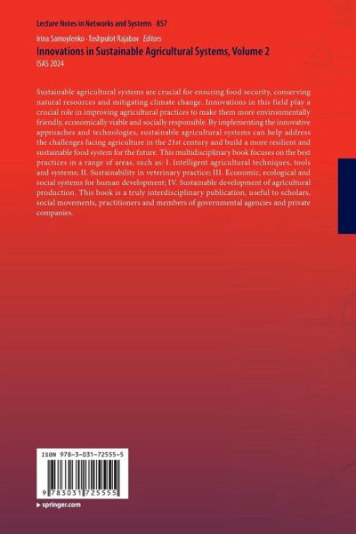Sustainable agricultural systems are crucial for ensuring food security, conserving natural resources and mitigating climate change. Innovations in this field play a crucial role in improving agricultural practices to make them more environmentally friendly, economically viable and socially responsible. By implementing the innovative approaches and technologies, sustainable agricultural systems can help address the challenges facing agriculture in the 21st century and build a more resilient and sustainable food system for the future. This multidisciplinary book focuses on the best practices in a range of areas, such as: I. Intelligent agricultural techniques, tools and systems; II. Sustainability in veterinary practice; III. Economic, ecological and social systems for human development; IV. Sustainable development of agricultural production. This book is a truly interdisciplinary publication, useful to scholars, social movements, practitioners and members of governmental agencies and private companies.