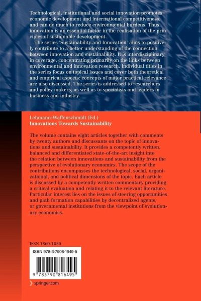 The volume contains eight articles together with comments by twenty authors and discussants on the topic of innovations and sustainability. It provides a competently written, balanced and differentiated state-of-the-art insight into the relation between innovations and sustainability from the perspective of evolutionary economics. The scope of the contributions encompasses the technological, social, organizational, and political dimensions of the topic. Each article is discussed by a competently written commentary providing a critical evaluation and relating it to the relevant literature. Particular interest lies on the issues of steering opportunities and path formation capabilities by decentralized agents, or governmental institutions from the viewpoint of evolutionary economics.
