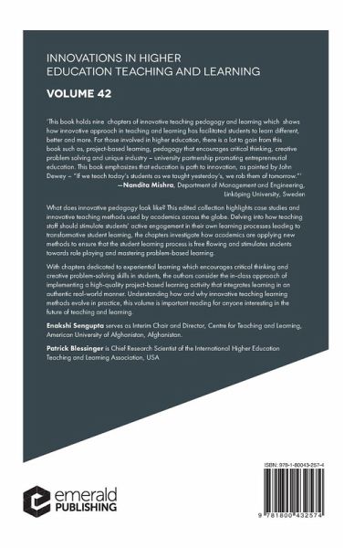 This book highlights case studies and innovative teaching methods used by academics across the globe. It talks about how teaching staff should stimulate studentsà â â active engagement in their own learning processes, and discusses the approach of implementing a project-based learning activity that integrates learning in an authentic manner.