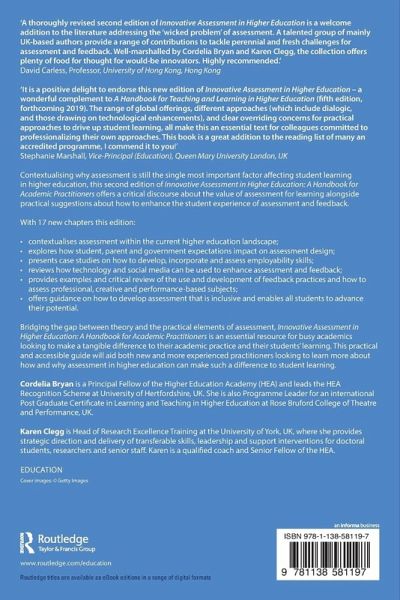 A thoroughly revised second edition of Innovative Assessment in Higher Education is a welcome addition to the literature addressing the 'wicked problem' of assessment. A talented group of mainly UK-based authors provide a range of contributions to tackle perennial and fresh challenges for assessment and feedback. Well-marshalled by Cordelia Bryan and Karen Clegg, the collection offers plenty of food for thought for would-be innovators. Highly recommended.