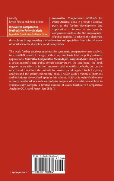 The work further develops methods for systematic comparative cases analysis in a small-N research design, with a key emphasis laid on policy-oriented applications. Innovative Comparative Methods for Policy Analysis is clearly both a social scientific and policy-driven endeavor; on the one hand, the book engages in an effort to further improve social scientific methods, but on the other hand this effort also intends to provide useful, applied tools for policy analysts and the "policy community" alike. Though quite a variety of methods and techniques are touched upon in this volume, its focus is mainly laid on two recently developed research methods/techniques which enable researchers to systematically compare a limited number of cases; Qualitative Comparative Analysis(QCA) and Fuzzy-Sets (FS).