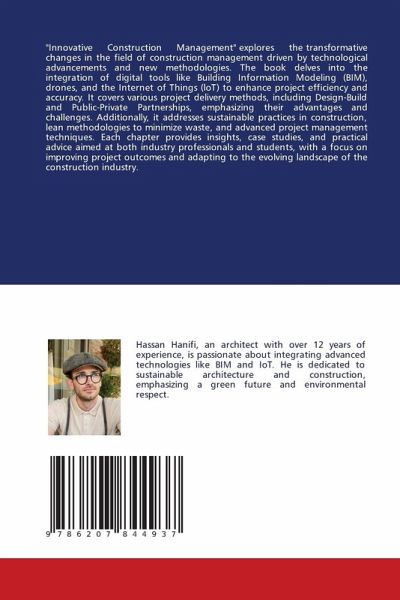 "Innovative Construction Management" explores the transformative changes in the field of construction management driven by technological advancements and new methodologies. The book delves into the integration of digital tools like Building Information Modeling (BIM), drones, and the Internet of Things (loT) to enhance project efficiency and accuracy. It covers various project delivery methods, including Design-Build and Public-Private Partnerships, emphasizing their advantages and challenges. Additionally, it addresses sustainable practices in construction, lean methodologies to minimize waste, and advanced project management techniques. Each chapter provides insights, case studies, and practical advice aimed at both industry professionals and students, with a focus on improving project outcomes and adapting to the evolving landscape of the construction industry.