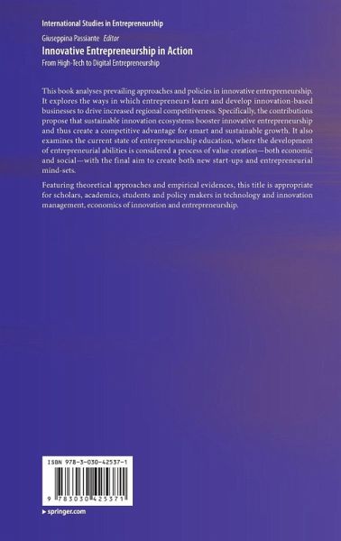 This book analyses prevailing approaches and policies in innovative entrepreneurship. It explores the ways in which entrepreneurs learn and develop innovation-based businesses to drive increased regional competitiveness. Specifically, the contributions propose that sustainable innovation ecosystems booster innovative entrepreneurship and thus create a competitive advantage for smart and sustainable growth. It also examines the current state of entrepreneurship education, where the development of entrepreneurial abilities is considered a process of value creation-both economic and social-with…mehr
