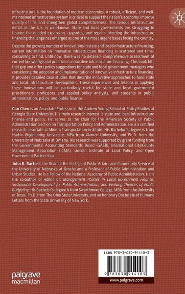 Despite the growing number of innovations in state and local infrastructure financing, current information on innovative infrastructure financing is scattered and time-consuming to find. Until now, there was no detailed, comprehensive assessment of current knowledge and practice in innovative infrastructure financing. This book fills that gap and offers policy suggestions for state and local government managers who are considering the adoption and implementation of innovative infrastructure financing. It provides detailed case studies and rich examples that describe innovative approaches to fund state and local infrastructure development. These experiences and lessons in applying these innovations will be particularly useful for state and local government practitioners, professors, applied policy analysts, and students in public administration, policy, and public finance.
