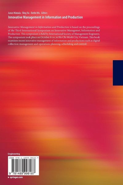 Innovative Management, Information and Production. This symposium is held by International Society of Management Engineers. The symposium took place on October 8-10, in HCMC, Vietnam. This book examines recent innovative management of information and productions such as digital collection management and operations planning, scheduling and control.
