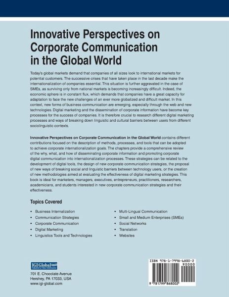 "This publication contains different contributions focused on the description of methods, processes and tools that can be adopted to achieve corporate internationalization goals and the importance of collecting all pertinent project knowledge that supports the adoption and utilization of digital marketing strategies for promoting the dissemination of corporate information"--