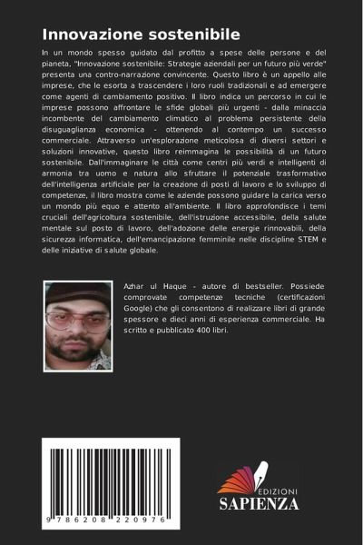In un mondo spesso guidato dal profitto a spese delle persone e del pianeta, "Innovazione sostenibile: Strategie aziendali per un futuro più verde" presenta una contro-narrazione convincente. Questo libro è un appello alle imprese, che le esorta a trascendere i loro ruoli tradizionali e ad emergere come agenti di cambiamento positivo. Il libro indica un percorso in cui le imprese possono affrontare le sfide globali più urgenti - dalla minaccia incombente del cambiamento climatico al problema persistente della disuguaglianza economica - ottenendo al contempo un successo commerciale. Attraverso un'esplorazione meticolosa di diversi settori e soluzioni innovative, questo libro reimmagina le possibilità di un futuro sostenibile. Dall'immaginare le città come centri più verdi e intelligenti di armonia tra uomo e natura allo sfruttare il potenziale trasformativo dell'intelligenza artificiale per la creazione di posti di lavoro e lo sviluppo di competenze, il libro mostra come le aziende possono guidare la carica verso un mondo più equo e attento all'ambiente. Il libro approfondisce i temi cruciali dell'agricoltura sostenibile, dell'istruzione accessibile, della salute mentale sul posto di lavoro, dell'adozione delle energie rinnovabili, della sicurezza informatica, dell'emancipazione femminile nelle discipline STEM e delle iniziative di salute globale.