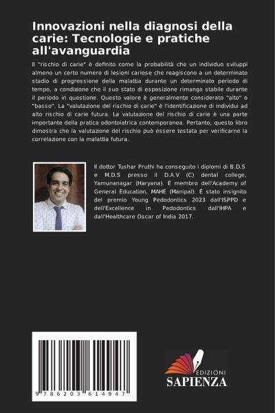 Il "rischio di carie" è definito come la probabilità che un individuo sviluppi almeno un certo numero di lesioni cariose che reagiscono a un determinato stadio di progressione della malattia durante un determinato periodo di tempo, a condizione che il suo stato di esposizione rimanga stabile durante il periodo in questione. Questo valore è generalmente considerato "alto" o "basso". La "valutazione del rischio di carie" è l'identificazione di individui ad alto rischio di carie futura. La valutazione del rischio di carie è una parte importante della pratica odontoiatrica contemporanea. Pertanto, questo libro dimostra che la valutazione del rischio può essere testata per verificarne la correlazione con la malattia futura.