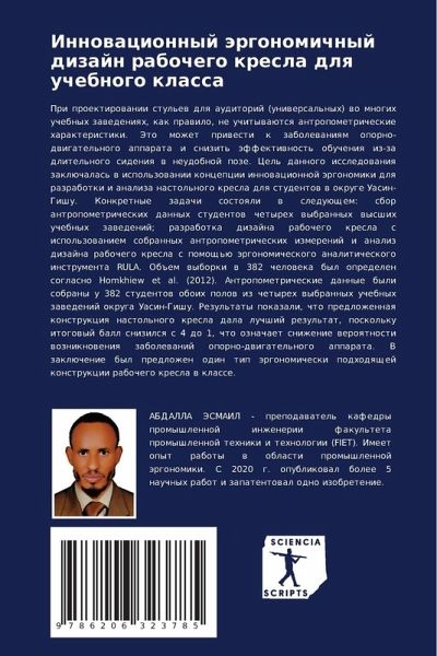 Pri proektirowanii stul'ew dlq auditorij (uniwersal'nyh) wo mnogih uchebnyh zawedeniqh, kak prawilo, ne uchitywaütsq antropometricheskie harakteristiki. Jeto mozhet priwesti k zabolewaniqm oporno-dwigatel'nogo apparata i snizit' äffektiwnost' obucheniq iz-za dlitel'nogo sideniq w neudobnoj poze. Cel' dannogo issledowaniq zaklüchalas' w ispol'zowanii koncepcii innowacionnoj ärgonomiki dlq razrabotki i analiza nastol'nogo kresla dlq studentow w okruge Uasin-Gishu. Konkretnye zadachi sostoqli w sleduüschem: sbor antropometricheskih dannyh studentow chetyreh wybrannyh wysshih uchebnyh zawedenij; razrabotka dizajna rabochego kresla s ispol'zowaniem sobrannyh antropometricheskih izmerenij i analiz dizajna rabochego kresla s pomosch'ü ärgonomicheskogo analiticheskogo instrumenta RULA. Ob#em wyborki w 382 cheloweka byl opredelen soglasno Homkhiew et al. (2012). Antropometricheskie dannye byli sobrany u 382 studentow oboih polow iz chetyreh wybrannyh uchebnyh zawedenij okruga Uasin-Gishu. Rezul'taty pokazali, chto predlozhennaq konstrukciq nastol'nogo kresla dala luchshij rezul'tat, poskol'ku itogowyj ball snizilsq s 4 do 1, chto oznachaet snizhenie weroqtnosti wozniknoweniq zabolewanij oporno-dwigatel'nogo apparata. V zaklüchenie byl predlozhen odin tip ärgonomicheski podhodqschej konstrukcii rabochego kresla w klasse.