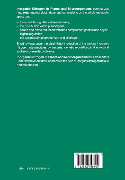 Inorganic Nitrogen in Plants and Microorganisms summarizes new experimental data, ideas and conclusions on the whole metabolic spectrum: - transport through the cell membranes, - the distribution within plant organs, - nitrate and nitrite reduction with their complicated genetic and physiological regulation, - the assimilation of ammonium and dinitrogen. Short reviews cover the dissimilatory reduction of the various inorganic nitrogen intermediates by bacteria, genetic regulation, and ecological and environmental problems. Inorganic Nitrogen in Plants and Microorganisms will help readers…mehr