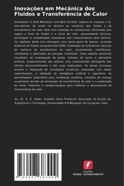 Innovations in Fluid Mechanics and Heat Transfer" explora os avanços e as descobertas de ponta no domínio da mecânica dos fluidos e da transferência de calor. Este livro investiga os mecanismos intrincados que regem o fluxo de fluidos e a troca de calor, apresentando técnicas, tecnologias e metodologias inovadoras que revolucionaram este domínio. Os capítulos deste livro abrangem uma vasta gama de tópicos, incluindo dinâmica de fluidos computacional (CFD), modelação de turbulência, técnicas de melhoria da transferência de calor, escoamentos multifásicos, nanofluidos e aplicações de energias renováveis. Cada capítulo apresenta resultados de investigação de ponta, estudos de casos e aplicações práticas, proporcionando aos leitores uma compreensão abrangente dos últimos desenvolvimentos e das suas implicações. Os temas principais incluem a integração de simulações numéricas avançadas com dados experimentais, a utilização de inteligência artificial e algoritmos de aprendizagem automática para modelação preditiva, soluções de energia sustentável através da otimização da transferência de calor e a exploração de novos materiais e nanotecnologias para melhorar o desempenho da transferência de calor.