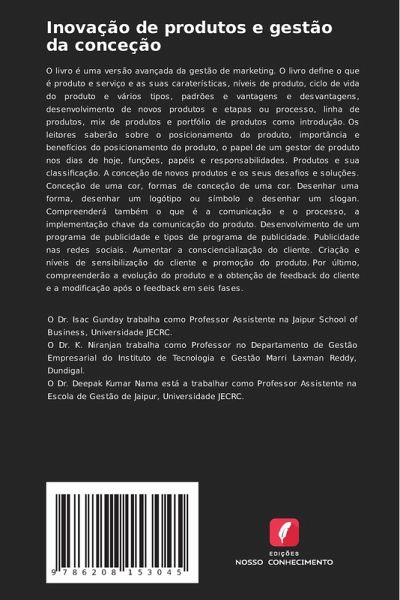 O livro é uma versão avançada da gestão de marketing. O livro define o que é produto e serviço e as suas caraterísticas, níveis de produto, ciclo de vida do produto e vários tipos, padrões e vantagens e desvantagens, desenvolvimento de novos produtos e etapas ou processo, linha de produtos, mix de produtos e portfólio de produtos como introdução. Os leitores saberão sobre o posicionamento do produto, importância e benefícios do posicionamento do produto, o papel de um gestor de produto nos dias de hoje, funções, papéis e responsabilidades. Produtos e sua classificação. A conceção de novos produtos e os seus desafios e soluções. Conceção de uma cor, formas de conceção de uma cor. Desenhar uma forma, desenhar um logótipo ou símbolo e desenhar um slogan. Compreenderá também o que é a comunicação e o processo, a implementação chave da comunicação do produto. Desenvolvimento de um programa de publicidade e tipos de programa de publicidade. Publicidade nas redes sociais. Aumentar a consciencialização do cliente. Criação e níveis de sensibilização do cliente e promoção do produto. Por último, compreenderão a evolução do produto e a obtenção de feedback do cliente e a modificação após o feedback em seis fases.