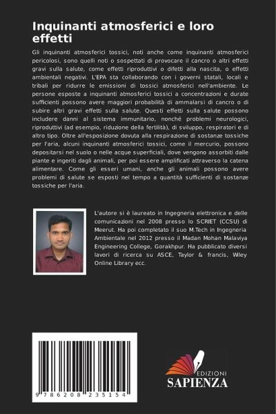 Gli inquinanti atmosferici tossici, noti anche come inquinanti atmosferici pericolosi, sono quelli noti o sospettati di provocare il cancro o altri effetti gravi sulla salute, come effetti riproduttivi o difetti alla nascita, o effetti ambientali negativi. L'EPA sta collaborando con i governi statali, locali e tribali per ridurre le emissioni di tossici atmosferici nell'ambiente. Le persone esposte a inquinanti atmosferici tossici a concentrazioni e durate sufficienti possono avere maggiori probabilità di ammalarsi di cancro o di subire altri gravi effetti sulla salute. Questi effetti sulla salute possono includere danni al sistema immunitario, nonché problemi neurologici, riproduttivi (ad esempio, riduzione della fertilità), di sviluppo, respiratori e di altro tipo. Oltre all'esposizione dovuta alla respirazione di sostanze tossiche per l'aria, alcuni inquinanti atmosferici tossici, come il mercurio, possono depositarsi nel suolo o nelle acque superficiali, dove vengono assorbiti dalle piante e ingeriti dagli animali, per poi essere amplificati attraverso la catena alimentare. Come gli esseri umani, anche gli animali possono avere problemi di salute se esposti nel tempo a quantità sufficienti di sostanze tossiche per l'aria.
