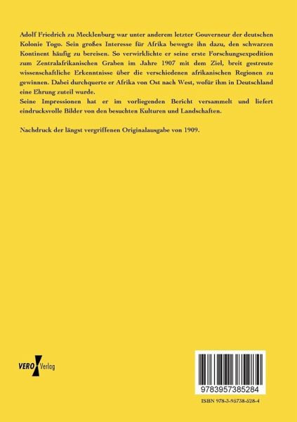 Adolf Friedrich zu Mecklenburg war unter anderem letzter Gouverneur der deutschen Kolonie Togo. Sein großes Interesse für Afrika bewegte ihn dazu, den schwarzen Kontinent häufig zu bereisen. So verwirklichte er seine erste Forschungsexpedition zum Zentralafrikanischen Graben im Jahre 1907 mit dem Ziel, breit gestreute wissenschaftliche Erkenntnisse über die verschiedenen afrikanischen Regionen zu gewinnen. Dabei durchquerte er Afrika von Ost nach West, wofür ihm in Deutschland eine Ehrung zuteil wurde.