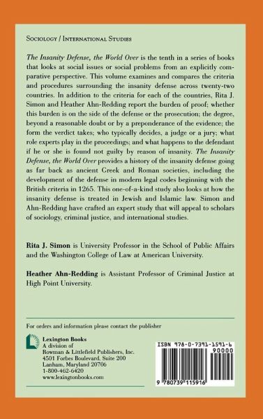 The Defense of Insanity, The World Over is the tenth in a series of books that examines and compares social issues or social problems from an explicitly comparative perspective. This volume examines and compares the criteria and procedures surrounding the defense of insanity across twenty-two countries.