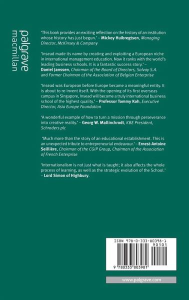 In 2000 INSEAD celebrates its forthieth anniversary. In this time INSEAD has grown to be the leading business and management school in Europe, and one of the most successful and influential in the world. This book is a business study and history of INSEAD which details how this success was achieved, and goes on to relate the story of the school to the management themes of leadership, teamworking and innovation. Available in English and French editions.