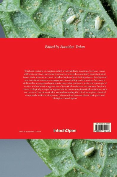 This book contains 20 chapters, which are divided into 5 sections. Section 1 covers different aspects of insecticide resistance of selected economically important plant insect pests, whereas section 2 includes chapters about the importance, development and insecticide resistance management in controlling malaria vectors. Section 3 is dedicated to some general questions in insecticide resistance, while the main topic of section 4 is biochemical approaches of insecticide resistance mechanisms. Section 5 covers ecologically acceptable approaches for overcoming insecticide resistance, such are the use of mycoinsecticides, and understanding the role of some plant chemical compounds, which are important in interactions between plants, their pests and biological control agents.