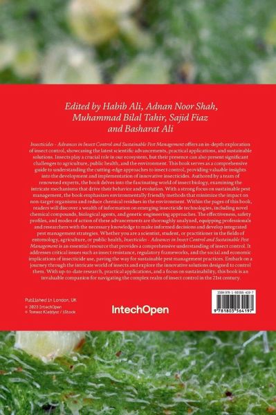 Insecticides - Advances in Insect Control and Sustainable Pest Management offers an in-depth exploration of insect control, showcasing the latest scientific advancements, practical applications, and sustainable solutions. Insects play a crucial role in our ecosystem, but their presence can also present significant challenges to agriculture, public health, and the environment. This book serves as a comprehensive guide to understanding the cutting-edge approaches to insect control, providing valuable insights into the development and implementation of innovative insecticides. Authored by a team of renowned experts, the book delves into the fascinating world of insect biology, examining the intricate mechanisms that drive their behavior and evolution. With a strong focus on sustainable pest management, the book emphasizes environmentally friendly methods that minimize the impact on non-target organisms and reduce chemical residues in the environment. Within the pages of this book, readers will discover a wealth of information on emerging insecticide technologies, including novel chemical compounds, biological agents, and genetic engineering approaches. The effectiveness, safety profiles, and modes of action of these advancements are thoroughly analyzed, equipping professionals and researchers with the necessary knowledge to make informed decisions and develop integrated pest management strategies. Whether you are a scientist, student, or practitioner in the fields of entomology, agriculture, or public health, Insecticides - Advances in Insect Control and Sustainable Pest Management is an essential resource that provides a comprehensive understanding of insect control. It addresses critical issues such as insect resistance, regulatory frameworks, and the social and economic implications of insecticide use, paving the way for sustainable pest management practices. Embark on a journey through the intricate world of insects and explore the innovative solutions designed to control them. With up-to-date research, practical applications, and a focus on sustainability, this book is an invaluable companion for navigating the complex realm of insect control in the 21st century.