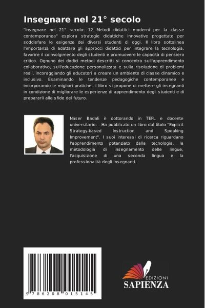 "Insegnare nel 21° secolo: 12 Metodi didattici moderni per la classe contemporanea" esplora strategie didattiche innovative progettate per soddisfare le esigenze dei diversi studenti di oggi. Il libro sottolinea l'importanza di adattare gli approcci didattici per integrare la tecnologia, favorire il coinvolgimento degli studenti e promuovere le capacità di pensiero critico. Ognuno dei dodici metodi descritti si concentra sull'apprendimento collaborativo, sull'educazione personalizzata e sulla risoluzione di problemi reali, incoraggiando gli educatori a creare un ambiente di classe dinamico e inclusivo. Esaminando le tendenze pedagogiche contemporanee e incorporando le migliori pratiche, il libro si propone di mettere gli insegnanti in condizione di migliorare le esperienze di apprendimento degli studenti e di prepararli alle sfide del futuro.