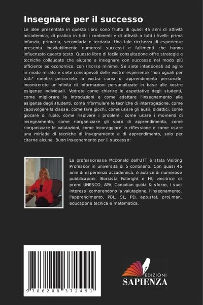 Le idee presentate in questo libro sono frutto di quasi 45 anni di attività accademica, di pratica in tutti i continenti e di attività a tutti i livelli: prima infanzia, primaria, secondaria e terziaria. Una tale ricchezza di esperienze presenta inevitabilmente numerosi successi e fallimenti che hanno influenzato questo testo. Questo libro di facile consultazione offre strategie e tecniche collaudate che aiutano a insegnare con successo nel modo più efficiente ed economico, con risorse minime. Se siete intenzionati ad agire in modo mirato e siete consapevoli delle vostre esperienze "non uguali per tutti" mentre percorrete la vostra curva di apprendimento personale, incontrerete un'infinità di informazioni personalizzate in base alle vostre esigenze individuali. Vedrete come chiarire le aspettative degli studenti, come migliorare le introduzioni e come adattare l'insegnamento alle esigenze degli studenti, come riformulare le tecniche di interrogazione, come capovolgere la classe, come fare giochi, come usare gli ausili didattici, come giocare di ruolo, come risolvere i problemi, come usare i momenti di insegnamento, come riorganizzare gli spazi di apprendimento, come riorganizzare le valutazioni, come incoraggiare la riflessione e come usare una miriade di tecniche di insegnamento e di apprendimento, solo per citarne alcune. Buon insegnamento per il successo!