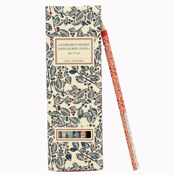 Passend zum Notizbuch gibt es jetzt auch eine Schachtel mit sechs Bleistiften im Design der Insel-Bücherei - versehen mit inspirierenden Zitaten: