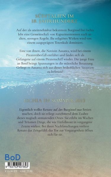 Süditalien im 18. Jahrhundert. Auf der als uneinnehmbar bekannten Burginsel bei Ischia lebt eine Gemeinschaft von Kapuzinernonnen nach uralten, strengen Regeln. Ihr religiöses Wirken wird von einem ausgeprägten Totenkult dominiert.Eine von ihnen, die Novizin Assunta, wird bei einem Piratenüberfall entführt und findet sich als Gefangene auf einem Piratenschiff wieder. Die junge Frau an Bord bringt Spannungen in die männliche Besatzung. Gelingt es Assunta sich aus dieser bedrohlichen Situation zu befreien?Ischia im Sommer 2013. Eigentlich wollte Renate auf der Burginsel nur Ferien machen, doch sie erliegt zunehmend dem Zauber dieses magisch anmutenden Ortes. Sie erlebt im Wachen und Träumen Dinge, die wie Einfallstore in vergangene Zeiten wirken. Bei ihren Nachforschungen verliert Renate das Zeitgefühl; das Tor zur Vergangenheit öffnet sich für sie.