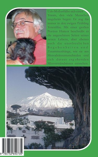 Udo Moll erfüllte sich einen Traum, den sehr viele Menschen insgeheim hegen: Er zog für immer in den ewigen Frühling Teneriffas, um dort zu leben und zu arbeiten. Mit einer großen Portion Humor beschreibt er sowohl die angenehmen Seiten seines neuen Lebens, als auch die unerfreulichen Begebenheiten und Zusammenhänge, wie sie aus Mentalitätsunterschieden und sich daraus ergebenden Missverständnissen entstehen können. Daneben aber deckt er auch schonungslos dunkle Machenschaften auf, die jedem Einwanderer das Leben auf der Insel schwer machen können. Eine spannende Geschichte, die trotzdem immer wieder zum Lachen reizt. Sie beleuchtet die verborgensten Winkel des Inseldaseins, beschreibt aber gleichzeitig fachlich kompetent die Besonderheiten und Schönheiten der Landschaften und die Highlights der kanarischen Gastlichkeit und Kochkünste. Wer gerne reist, kann sich hier Appetit holen!