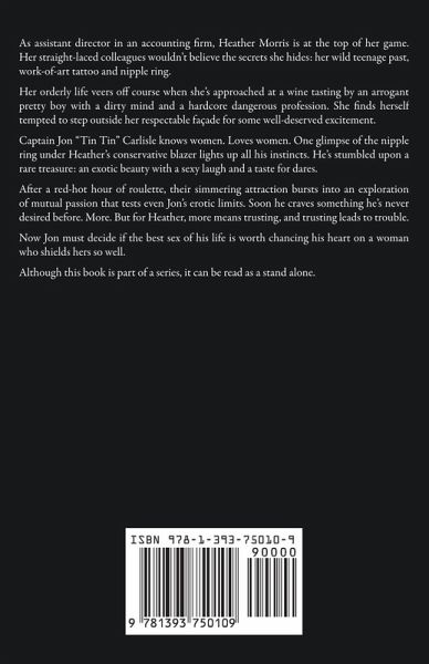 As assistant director in an accounting firm, Heather Morris is at the top of her game. Her straight-laced colleagues wouldn't believe the secrets she hides: her wild teenage past, work-of-art tattoo and nipple ring. Her orderly life veers off course when she's approached at a wine tasting by an arrogant pretty boy with a dirty mind and a hardcore dangerous profession. She finds herself tempted to step outside her respectable façade for some well-deserved excitement. Captain Jon "Tin Tin" Carlisle knows women. Loves women. One glimpse of the nipple ring under Heather's conservative blazer lights up all his instincts. He's stumbled upon a rare treasure: an exotic beauty with a sexy laugh and a taste for dares. After a red-hot hour of roulette, their simmering attraction bursts into an exploration of mutual passion that tests even Jon's erotic limits. Soon he craves something he's never desired before. More. But for Heather, more means trusting, and trusting leads to trouble. Now Jon must decide if the best sex of his life is worth chancing his heart on a woman who shields hers so well. Although this book is part of a series, it can be read as a stand alone.
