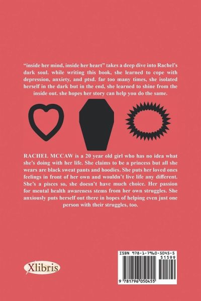 "inside her mind, inside her heart" takes a deep dive into Rachel's soul. while writing this book, she learned to cope with depression, anxiety, and ptsd. far too many times, she isolated herself in the dark but in the end, she learned to shine from the inside out. she hopes her story can help you do the same.