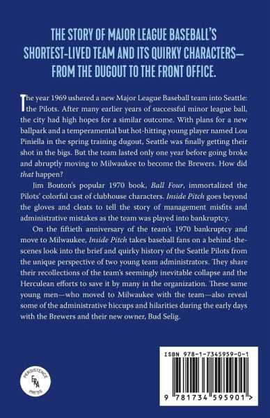 The story of Major League Baseball’s shortest-lived team and its quirky characters—from the dugout to the front office. The year 1969 ushered a new Major League Baseball team into Seattle: the Pilots. After many earlier years of successful minor league ball, the city had high hopes for a similar outcome. With plans for a new ballpark and a temperamental but hot-hitting young player named Lou Piniella in the spring training dugout, Seattle was finally getting their shot in the bigs. But the team lasted only one year before going broke and abruptly moving to Milwaukee to become the Brewers. How did that happen? Jim Bouton’s popular 1970 book, Ball Four, immortalized the Pilots’ colorful cast of clubhouse characters. Inside Pitch goes beyond the gloves and cleats to tell the story of management misfits and administrative mistakes as the team was played into bankruptcy. On the fiftieth anniversary of the team’s 1970 bankruptcy and move to Milwaukee, Inside Pitch takes baseball fans on a behind-the-scenes look into the brief and quirky history of the Seattle Pilots from the unique perspective of two young team administrators. They share their recollections of the team’s seemingly inevitable collapse and the Herculean efforts to save it by many in the organization. These same young men—who moved to Milwaukee with the team—also reveal some of the administrative hiccups and hilarities during the early days with the Brewers and their new owner, Bud Selig.
