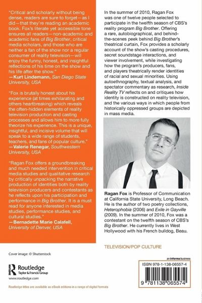 In the summer of 2010, Ragan Fox was one of twelve people selected to participate in the twelfth season of CBS's reality program Big Brother. Offering a rare, autobiographical, and behind-the-scenes peek behind Big Brother's theatrical curtain, Fox provides a scholarly account of the show's casting procedures, secret soundstage interactions, and viewer involvement, while investigating how the program's producers, fans, and players theatrically render identities of racial and sexual minorities. Using autoethnography, textual analysis, and spectator commentary as research, Inside Reality TV reflects on and critiques how identity is constructed on reality television, and the various ways in which people from historically oppressed groups are depicted in mass media.