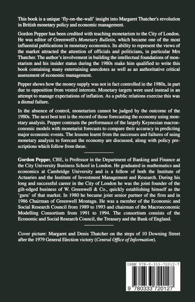 An authoritative inside account of the origins, successes and failures of monetarism in Britain. Gordon Pepper provides a portrait of early monetarism in the UK, explains its growing appeal in the 1970s and assesses the outcome of monetarism under Thatcher, from his own perspective as a 'fly on the wall'. He provides a comprehensive guide to macroeconomic forecasting and its policy implications.