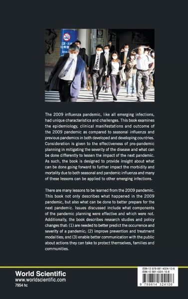 The 2009 influenza pandemic, like all emerging infections, had unique characteristics and challenges. This book examines the epidemiology, clinical manifestations and outcome of the 2009 pandemic as compared to seasonal influenza and previous pandemics in both developed and developing countries. Consideration is given to the effectiveness of pre-pandemic planning in mitigating the severity of the disease and what can be done differently to lessen the impact of the next pandemic. As such, the book is designed to provide insight about what can be done going forward to further impact the morbidity and mortality due to both seasonal and pandemic influenza and many of these lessons can be applied to other emerging infections. There are many lessons to be learned from the 2009 pandemic. This book not only describes what happened in the 2009 pandemic, but also what can be done to better prepare for the next pandemic. Issues discussed include what components of the pandemic planning were effective and which were not. Additionally, the book describes research studies and policy changes that: 1) are needed to better predict the occurrence and severity of a pandemic; 2) improve prevention and treatment modalities; and 3) enable better communication with the public about actions they can take to protect themselves, families and communities.