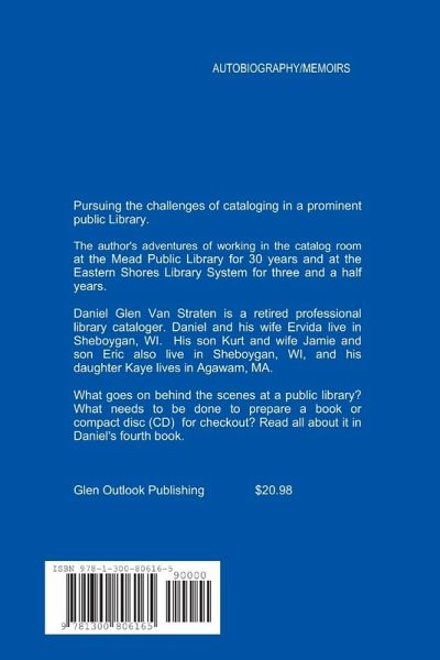 Pursuing the challenges of working in the catalog room at the Mead Public Library in Sheboygan, Wisconsin, and cataloging and delivering books for the Eastern Shores Library System of the Sheboygan and Ozaukee Counties of Wisconsin. The author, a retired library cataloger, tells what goes on behind the scenes at the public library and what needs to be done to prepare a book or compact disc (CD) ready for checkout.