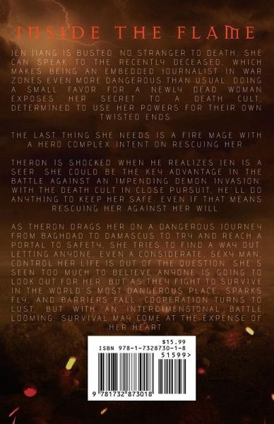 Jen Jiang is busted. No stranger to death, she can speak to the recently deceased, which makes being an embedded journalist in war zones even more dangerous than usual. Doing a small favor for a newly dead woman exposes her secret to a death cult, determined to use her powers for their own twisted ends. The last thing she needs is a fire mage with a hero complex intent on rescuing her. Theron is shocked when he realizes Jen is a seer. She could be the key advantage in the battle against an impending demon invasion. With the death cult in close pursuit, he’ll do anything to keep her safe. Even if that means rescuing her against her will. As Theron drags her on a dangerous journey from Baghdad to Damascus to try and reach a portal to safety, she tries to find a way out. Letting anyone, even a considerate, sexy man, control her life is out of the question. She’s seen too much to believe anyone is going to look out for her. But as they fight to survive in the world’s most dangerous place, sparks fly, and barriers fall. Cooperation turns to lust, but with an interdimensional battle looming, survival may come at the expense of her heart.