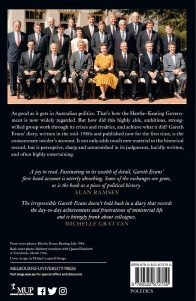 As good as it gets in Australian politics. As good as it gets in Australian politics. That's how the Hawke-Keating Government is now widely regarded. But how did this highly able, ambitious, strong-willed group work through its crises and rivalries, and achieve what it did? Gareth Evans's diary, written in the mid-1980s and published now for the first time, is the consummate insider's account. It not only adds much new material to the historical record, but is perceptive, sharp and unvarnished in its judgments, lucidly written, and often highly entertaining.