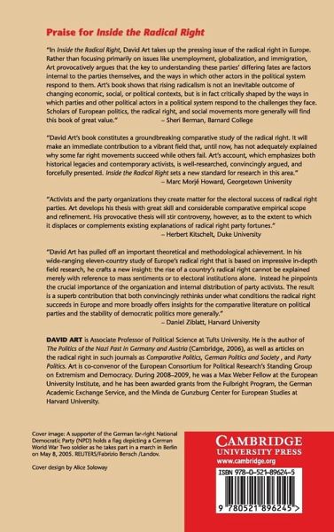 'In Inside the Radical Right, David Art takes up the pressing issue of the radical right in Europe. Rather than focusing primarily on issues like unemployment, globalization, and immigration, Art provocatively argues that the key to understanding these parties' differing fates are factors internal to the parties themselves, and the ways in which other actors in the political system respond to them. Art's book shows that rising radicalism is not an inevitable outcome of changing economic, social, or political contexts, but is in fact critically shaped by the ways in which parties and other political actors in a political system respond to the challenges they face. Scholars of European politics, the radical right, and social movements more generally will find this book of great value.' Sheri Berman, Barnard College