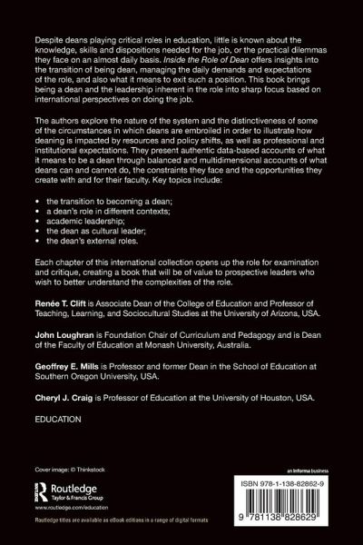 Despite deans playing critical roles in education, little is known about the knowledge, skills, and dispositions needed for the job, or the practical dilemmas they face on an almost daily basis. Each chapter of this international collection opens the role up for examination and critique, developing a deeper understanding of what it means to be a dean, and offering insights into the transition into the role, managing the daily demands and expectations of it, and what it means to exit the deanship. The book brings being a dean and the leadership inherent in the position into sharp focus based on international perspectives on doing the job.