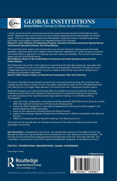Inside the United Nations illustrates some of the parameters surrounding consensus-building at the United Nations, seeking to provide new insights beyond what is already known. The author spent twelve years as P.R of Guatemala at the UN, offering him privileged observatories in all three of the main inter-governmental organs: the General Assembly, the Economic and Social Council, and the Security Council. In this book Rosenthal focuses on six case studies that offer the breadth and scope of what the UN does, and illustrate some of the main elements of the dynamics of consensus-building, providing concrete examples of the ingredients that shape decision-making in a multilateral setting. The chapters: cover the origin, preparation, and outcome of two successful international conferences: the 2000 Millennium Summit and the 2002 International Conference on Financing for Development; look at the 2000 negotiation on the scale of assessments to finance the UN's budget in the General Assembly's fifth committee (2000-2001); focus on the relevance of the Economic and Social Council; consider the internal politics involved in vying for elected posts in intergovernmental bodies by focusing on the campaign to be elected to the Security Council between Guatemala and Venezuela in 2006; reflect on the peculiarities of decision-making in the Security Council. Providing an insider's view on the UN and exploring different facets of multilateral diplomacy at the UN, this book will be of great use and interest to scholars of international relations as well as the diplomatic community. ¿ ¿ ¿ ¿