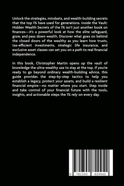 Unlock the strategies, mindsets, and wealth-building secrets that the top 1% have used for generations. Inside the Vault: Hidden Wealth Secrets of the 1% isn't just another book on finances-it's a powerful look at how the elite safeguard, grow, and pass down wealth. Discover what goes on behind the closed doors of the wealthy as you learn how trusts, tax-efficient investments, strategic life insurance, and exclusive asset classes can set you on a path to real financial independence. In this book, Christopher Martin opens up the vault of knowledge the ultra-wealthy use to stay at the top. If you're ready to go beyond ordinary wealth-building advice, this guide provides the step-by-step tactics to help you establish a legacy, protect your assets, and build a resilient financial empire-no matter where you start. Step inside and take control of your financial future with the tools, insights, and actionable steps the 1% rely on every day.