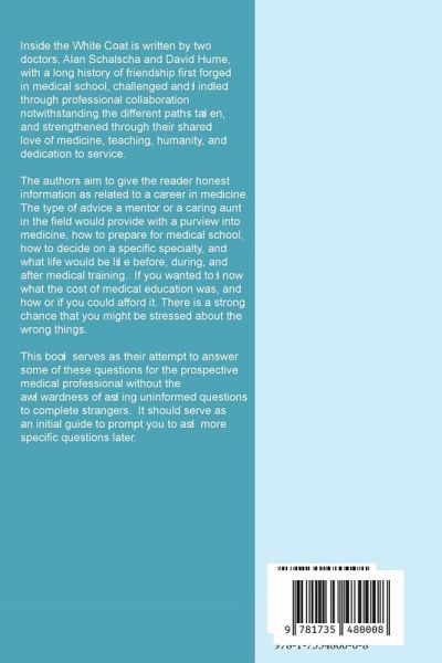 Inside the White Coat is written by two doctors, Alan Schalscha and David Hume, with a long history of friendship first forged in medical school, challenged and kindled through professional collaboration notwithstanding the different paths taken, and strengthened through their shared love of medicine, teaching, humanity, and dedication to service. The authors aim to give the reader honest information as related to a career in medicine. The type of advice a mentor or a caring aunt in the field would provide with a purview into medicine, how to prepare for medical school, how to decide on a specific specialty, and what life would be like before, during, and after medical training. If you wanted to know what the cost of medical education was, and how or if you could afford it. There is a strong chance that you might be stressed about the wrong things. This book serves as their attempt to answer some of these questions for the prospective medical professional without the awkwardness of asking uninformed questions to complete strangers. It should serve as an initial guide to prompt you to ask more specific questions later.