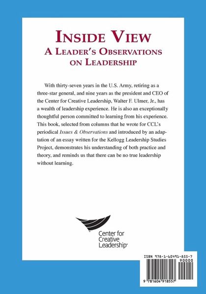 With thirty-seven years in the U.S. Army, retiring as a three-star general, and nine years as the president and CEO of the Center for Creative Leadership, Walter F. Ulmer, Jr., has a wealth of leadership experience. He is also an exceptionally thoughtful person committed to learning from his experience. This book, selected from columns that he wrote for CCL's periodical Issues & Observations and introduced by an adaptation of an essay written for the Kellogg Leadership Studies Project, demonstrates his understanding of both practice and theory, and reminds us that there can be no true leadership without learning.