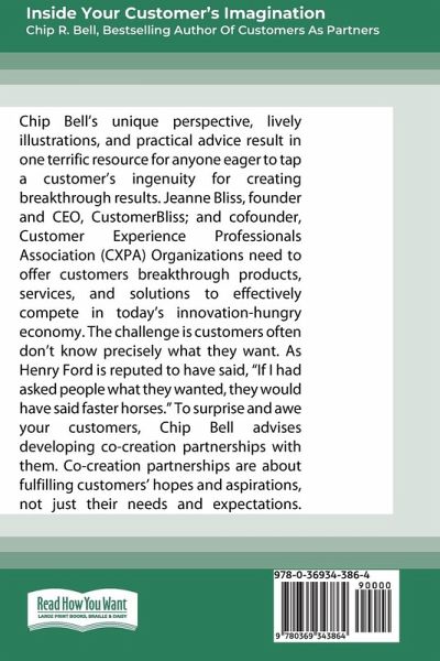 Chip Bell's unique perspective, lively illustrations, and practical advice result in one terrific resource for anyone eager to tap a customer's ingenuity for creating breakthrough results.--Jeanne Bliss, founder and CEO, CustomerBliss; and cofounder, Customer Experience Professionals Association (CXPA)Organizations need to offer customers breakthrough products, services, and solutions to effectively compete in today's innovation-hungry economy. The challenge is customers often don't know precisely what they want. As Henry Ford is reputed to have said, "If I had asked people what they wanted, they would have said faster horses."To surprise and awe your customers, Chip Bell advises developing co-creation partnerships with them. Co-creation partnerships are about fulfilling customers' hopes and aspirations, not just their needs and expectations. Co-creation partnerships require (1) curiosity that uncovers insight, (2) grounding that promotes clear focus, (3) discovery that fosters risk-taking, (4) trust that safeguards partnership purity, and (5) passion that inspires energized generosity.Using examples from organizations like McDonald's, DHL, Marriott, Lockheed Martin, Discover Financial, Ultimate Software, and many more, Bell shows how co-creation partnerships enable you to tap into the treasure trove of ideas, ingenuity, and genius-in-the-raw within every customer.
