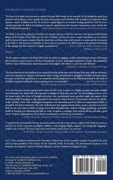 Ira Reiss is one of the pioneers of modern sex research and one of the few survivors who has personally known almost all the leaders of the field since the time of Kinsey. He has also been a major contributor to sex research itself. In terms of human sexuality Reiss has been there and done that, and his book is a must-read for newcomers in the field. It will also prove invaluable to those who are veterans in the field because of his personal knowledge of the changes that have occurred. I highly recommend it. -- Vern L. Bullough, author of Science in the Bedroom: A History of Sex Research Ira Reiss has been in the forefront of sex research for most of the time since Kinsey. Even now, well into his retirement, he continues an energetic involvement with a strong commitment to strengthen the field of sexual science. It is great to have his experiences as a sex researcher and his perspectives on the field documented in this book. It should be required reading for anyone aspiring to be a sex researcher. -- John Bancroft, Kinsey Institute for Research in Sex, Gender, and Reproduction Ira Reiss is the ideal social scientist to speak of the past half century of sex research, for he bridged the span from pioneers such as Kinsey to the complex situation of the present and is familiar with virtually every important development-many of which were his. He has been a major figure in sex research, having enriched it with his cross-cultural approach, his skill in developing sex research organizations, his unusual commonsense views, and his dislike of fads and bureaucracy. -- Paul Gebhard, Indiana University, former director of the Kinsey Institute It is rare that any scientist explores and reviews his life work in print. In a highly personal and easily readable conversational tone, deservedly well-respected sociologist Ira Reiss does just that. For the budding scientist, as for the casual reader, this review of thought and action over a professional career provides insight into aspects of the developing field of sexology as they appeared to this involved critical observer. Of particular value for the scholastically minded is how Reiss challenged assumptions and demanded proof of otherwise unquestioned beliefs to strengthen his theory formation. Not only recall memory but regular journal entries, names, and dates are used to flush out the early years in which sociology joined other disciplines like medicine, biology, psychology and public health in forming and enhancing the field we today recognize as sexology. Reiss explores all this and adds a good touch of ethical, philosophical, and political considerations in this lasting contribution. -- Milton Diamond, University of Hawaii, Department of Anatomy and Reproductive Biology A professional and scientific history, personal memoir, and up-to-the-minute analysis of the field of sexual science by one of the truly great sexologists. Brilliant, wide-ranging, highly original, and completely engaging. I couldn't put it down! The most important book about sexual science in memory. -- Frank Farley, Former President, American Psychological Association In this capstone volume to Ira Reiss' life's work, he writes an engaging, candid, and informed account of his struggles to advance sexual science in the face of strong and, at times, intransigent opposition. People who sympathize with his vision will find many interesting stories and insights with which to carry the work forward. -- Edward O. Laumann, University of Chicago This informative and entertaining book is a must read for those who will now contribute to and shape the sexual science landscape. Essential. CHOICE Reiss allows readers a glimpse into the personal and professional experiences that shaped his own views on sexuality...This is a thought-provoking volume, Reiss effectively demonstrates the important contributions that he and other sexual scholars made to national and international policies such as that concerning HIV/AIDS, highlighting the significance of academic research and writing that extends beyond the university. Anyone interested in the history of medicine, science , or the academy as well as sexual studies would fin much of use in this book. Journal Of The History Of Sexuality, September 2010
