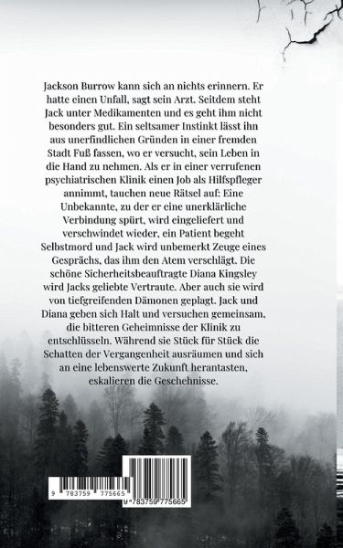 Jackson Burrow kann sich an nichts erinnern. Er hatte einen Unfall, sagt sein Arzt. Seitdem steht Jack unter Medikamenten und es geht ihm nicht besonders gut. Ein seltsamer Instinkt lässt ihn aus unerfindlichen Gründen in einer fremden Stadt Fuß fassen, wo er versucht, sein Leben in die Hand zu nehmen. Als er in einer verrufenen psychiatrischen Klinik einen Job als Hilfspfleger annimmt, tauchen neue Rätsel auf: Eine Unbekannte, zu der er eine unerklärliche Verbindung spürt, wird eingeliefert und verschwindet wieder, ein Patient begeht Selbstmord und Jack wird unbemerkt Zeuge eines Gesprächs, das ihm den Atem verschlägt. Die schöne Sicherheitsbeauftragte Diana Kingsley wird Jacks geliebte Vertraute. Aber auch sie wird von tiefgreifenden Dämonen geplagt. Jack und Diana geben sich Halt und versuchen gemeinsam, die bitteren Geheimnisse der Klinik zu entschlüsseln. Während sie Stück für Stück die Schatten der Vergangenheit ausräumen und sich an eine lebenswerte Zukunft herantasten, eskalieren die Geschehnisse. In der Geschichte geht es um den Kampf gegen die Abgründe der menschlichen Psyche. Es geht um den schmalen Grad zwischen dunkel und hell. Die Grauzone zwischen schwarz und weiß. Am Ende steht die Frage, ob überhaupt jemand diesen Kampf gewinnen kann.