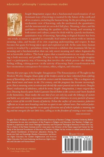 Insight-imagination is an important contribution to emerging postmodern understandings of science and epistemology. Sloan argues that the modem 'technicist' worldview is responsible for the ecological devastation and pervasive spiritual alienation threatening humanity in our age. He explains in clear, non-technical language how the ideas of physicist David Bohm, philosophers Michael Polanyi and Owen Barfield, and other holistic thinkers portray a way of knowing that engages the whole person in a deeply meaningful relationship with the world.