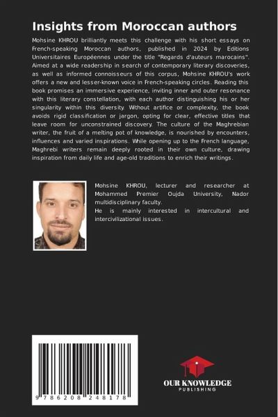 Mohsine KHROU brilliantly meets this challenge with his short essays on French-speaking Moroccan authors, published in 2024 by Editions Universitaires Européennes under the title "Regards d'auteurs marocains". Aimed at a wide readership in search of contemporary literary discoveries, as well as informed connoisseurs of this corpus, Mohsine KHROU's work offers a new and lesser-known voice in French-speaking circles. Reading this book promises an immersive experience, inviting inner and outer resonance with this literary constellation, with each author distinguishing his or her singularity within this diversity. Without artifice or complexity, the book avoids rigid classification or jargon, opting for clear, effective titles that leave room for unconstrained discovery. The culture of the Maghrebian writer, the fruit of a melting pot of knowledge, is nourished by encounters, influences and varied inspirations. While opening up to the French language, Maghrebi writers remain deeply rooted in their own culture, drawing inspiration from daily life and age-old traditions to enrich their writings.