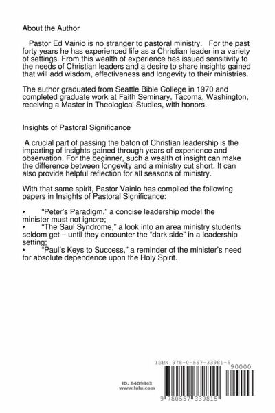 A compilation of three insightful papers on Christian leadership: Peter's Paradigm, The Saul Syndrome, and Paul's Keys to Success.