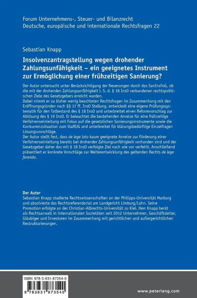 Tabellenverzeichnis - Abkürzungsverzeichnis - Einleitung - Entstehungshistorie des 18 InsO - Normzweck - rechtspolitische Ziele des Gesetzgebers - Der Tatbestand der drohenden Zahlungsunfähigkeit gemäß 18 InsO - Ausgewählte Maßnahmen zur Vermeidung oder Beseitigung einer drohenden Zahlungsunfähigkeit - Abgrenzung zu dem Insolvenzeröffnungsgrund der Überschuldung gemäß 19 InsO und Auswirkungen auf den Anwendungsbereich des 18 InsO - Die drohendende Zahlungsunfähigkeit als Eröffnungsgrund i. S. d. 16 InsO - Fakultative Insolvenzantragstellung bei drohender Zahlungsunfähigkeit - Die Berechtigung zur Stellung eines Insolvenzantrags im Stadium der drohenden Zahlungsunfähigkeit - Erreichung der mit 18 InsO verfolgten rechtspolitischen Ziele des Gesetzgebers - Entwicklung von Gestaltungsanregungen für die Legislative - Zusammenfassung in Thesen - Literaturverzeichnis