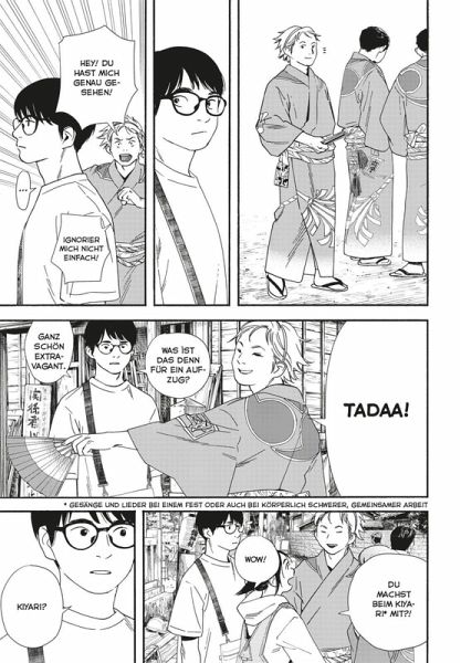 Heute findet das größte regionale Straßenfest statt, das Seihaku-Fest. Bunte Festwagen ziehen durch die Stadt. Und nur an diesem ganz besonderen Tag ist es auch Kindern erlaubt, bis spät in die Nacht auf den Straßen zu bleiben und um die Häuser zu ziehen. Ganta und Isaki können das Festtreiben im Hause von Verwandten ihrer Lehrerin Frau Kurashiki quasi von einem Logenplatz aus verfolgen.